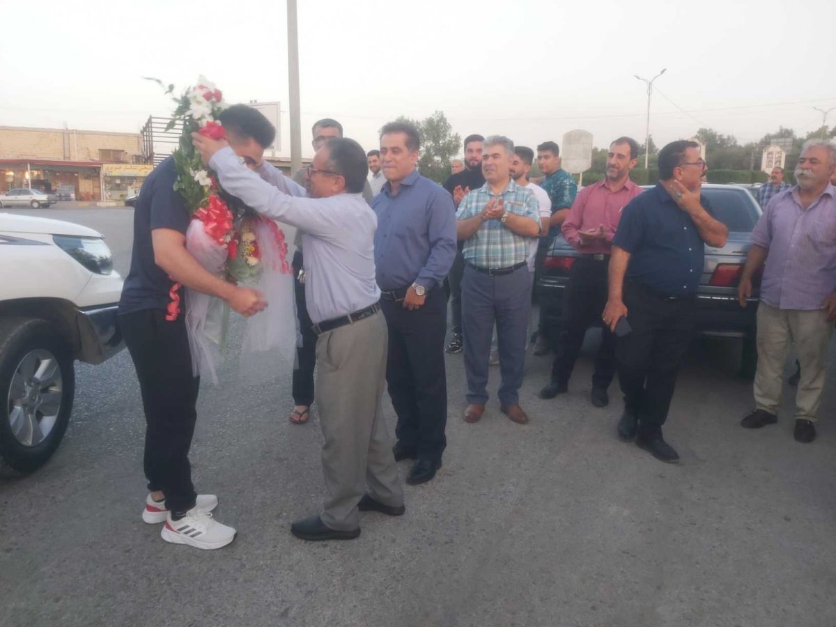 حاضرین با انداختن حلقه گل به گردن ایلیا صالحی پور از کسب مقام برنز و عنوان سومی مسابقات قهرمانی جهان توسط این جوان رشید و برومند دیار زاگرس تقدیر نموده و موفقیت وی را شادباش گفتند.