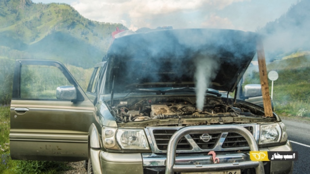 ابتدا ماشین را متوقف کنید و کاپوت را بالا دهید تا گرمای آن خارج گردد .هیچ گاه در رادیاتور و مخزن را باز نکنید زیرا فشار سیستم بالاست و ممکن است بر اثر پاشیدن آب بسوزید.