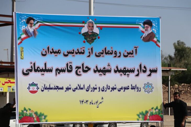 در ادامه پیمان مولایی فرماندار مسجدسلیمان ضمن تبریک فرا رسیدن هفته وحدت، ولادت با سعادت پیامبر عظیم الشان اسلام (ص) و میلاد حضرت امام صادق (ع) بیان داشت: در شورای فرهنگ عمومی شهرستان با درایت امام جمعه محترم، این میدان مزین به نام سردار دلها شهید حاج قاسم سلیمانی شد که پس از تصویب ، شهردار و اعضای شورای شهر اقدام به بهسازی و خرید این تندیس کردند که بحمدالله امروز رونمایی شد.