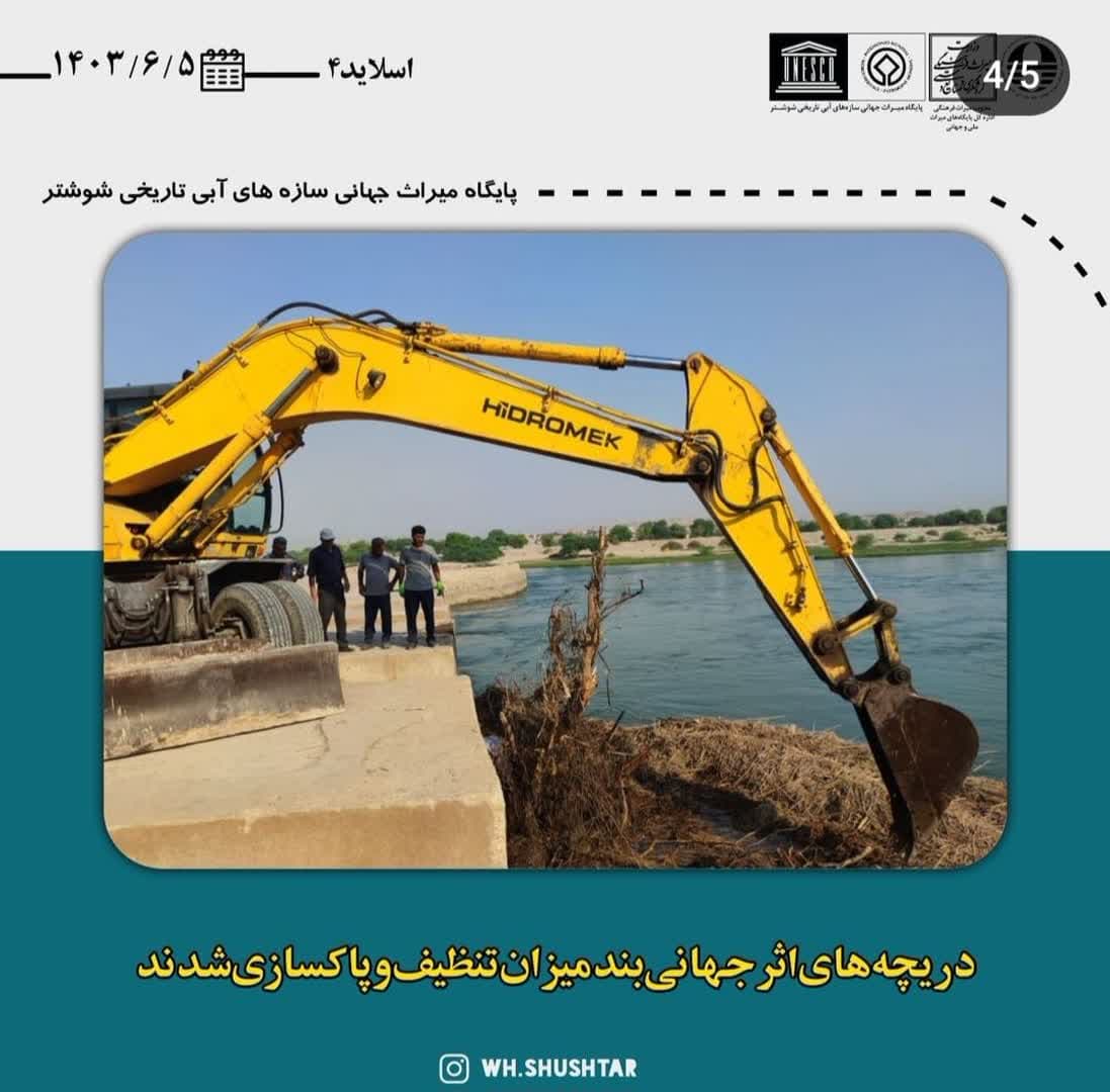 بهگزارش بهار زاگرس به نقل از روابطعمومی ادارهکل میراثفرهنگی، گردشگری و صنایعدستی خوزستان، امین مهدویکیا در تشریح این خبر افزود: پس از هر بارندگی و یا تغییر در دبی رودخانه از سد تنظیمی بالادست، معمولاً شاهد افزایش سطح آب رودخانه و در نتیجه افزایش آوردههای رودخانهای مانند شاخ و برگ و تنههای عظیم درختان به رودخانه هستیم که در بخش شمالی بندمیزان جمع و باعث انسداد دریچههای آن میشوند؛ در اینصورت از میزان آب موردنیاز نهر دستکند، گرگر و دیگر محوطههای ثبتجهانی در این شاخه کاسته شده و همچنین حقآبه زمینهای کشاورزی و آبزیپروران پاییندست به خوبی تأمین نمیشود. سرپرست پایگاه میراثجهانی سازههای آبیتاریخی شوشتر تصریح کرد: رفع گرفتگی و لایروبی این محدوده از رودخانه، یکی از چالشهایی است که با تلاش و همت کارکنان اجرایی پایگاه که متولی انجام اینکار نیستند، تاکنون تقریباً به صورت میانگین هر ۴۰ تا ۵۰ روز به صورت سنتی با کمترین و سادهترین امکانات به انجام رسیده است. او عنوان کرد: حجم بالای لایروبی و پاکسازی در این محدوده، نیازمند همکاری سایر ارگانهای مربوط بود که به حمدالله این موضوع با همکاری امور آب شمال و شهرداری شوشتر طی عملیاتی دو روزه انجام شد. بندمیزان یکنمونه از بندهای وزنی ساخته دست انسان و مربوط به دوره ساسانیان است که تا امروز پابرجا است و در نشست سالانه کمیته میراثجهانی یونسکو در ۲۶ ژوئن ۲۰۰۹ (۵ تیرماه ۱۳۸۸) در شهر سویل اسپانیا، با احراز معیارهای ۱، ۲ و ۵ با عنوان نظام آبیتاریخی شوشتر به عنوان دهمین اثر ایران در فهرست میراثجهانی یونسکو با شماره ۱۳۱۵ به ثبت رسید.